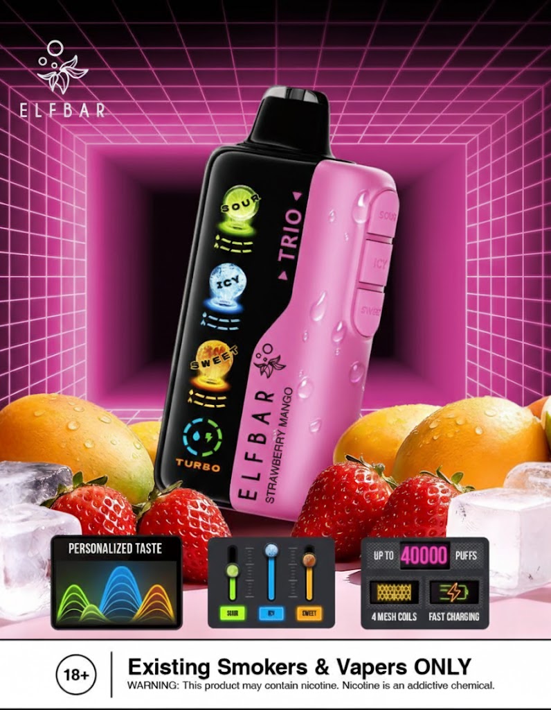 Elfbar trio up to 40000 puffs 50mg nicotine 4 mesh coil disposable vape